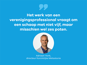 ‘Verenigingen zijn niet alleen maatschappelijk relevant, maar ook gewoon ontzettend leuk en boeiend om in te werken. Het werk van een verenigingsprofessional vraagt om een schaap met niet vijf, maar misschien wel zes poten.’ Aldus Adriaan.
