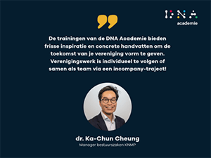 Werken binnen een vereniging is anders dan in een commerciële organisatie. Besluitvorming is vaak complexer, belangen zijn divers en de dynamiek tussen leden, bestuurders en beleid vraagt om een scherp gevoel voor verhoudingen. Voor dr. Ka-Chun Cheung, werkzaam bij de KNMP, was dat een herkenbaar uitgangspunt om deel te nemen aan de training Verenigingswerk van de DNA Academie.